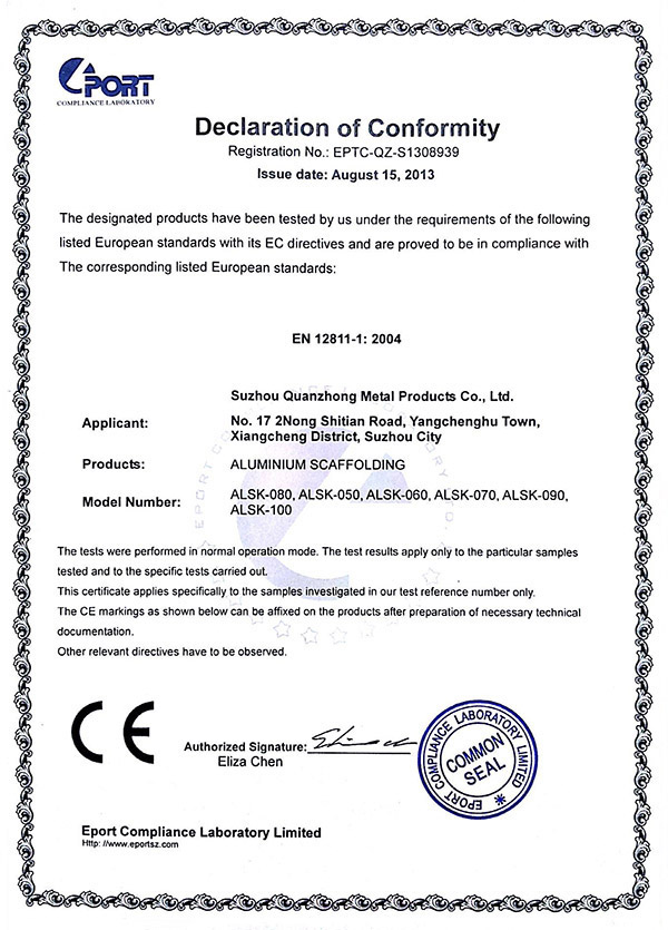 开云官方app下载站专注铝合金制品的开发“产品就是人品”的企业理念,不断进行技术创新、设备创新、服务创新、和管理方式创新来继续研发出更多满足未来发展需要的产品, 公司产品通过欧盟认证取得CE认证并取得证书,铝合金脚手架系列产品通过SGS认证,铝合金平台和梯具类产品均严格按照GB12142-2007,GB17888等标准设计生产。